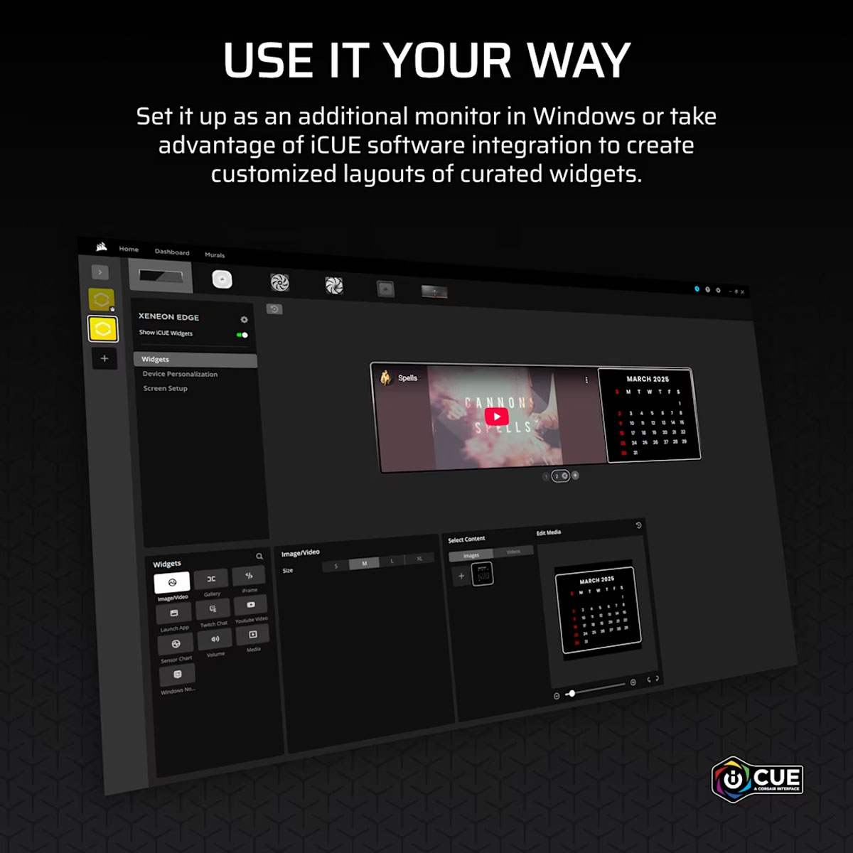The five-point multi-touch capacitive touchscreen makes interacting with your widgets, apps, and games simple. Use it as an additional monitor in Windows or use CORSAIR iCUE software to create custom layouts and a personalized widget matrix.