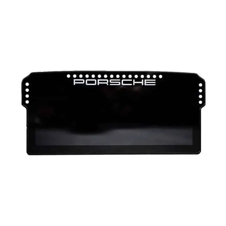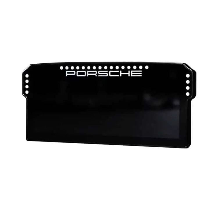 The Porsche 911 GT3 Cup display unit is made using the best materials possible. The housing is milled from a single piece of aluminium. The glass has the Porsche logo silkscreened on it. The LCD screen is a high-quality 1920×720 resolution 10,3″ screen running at 60Hz.