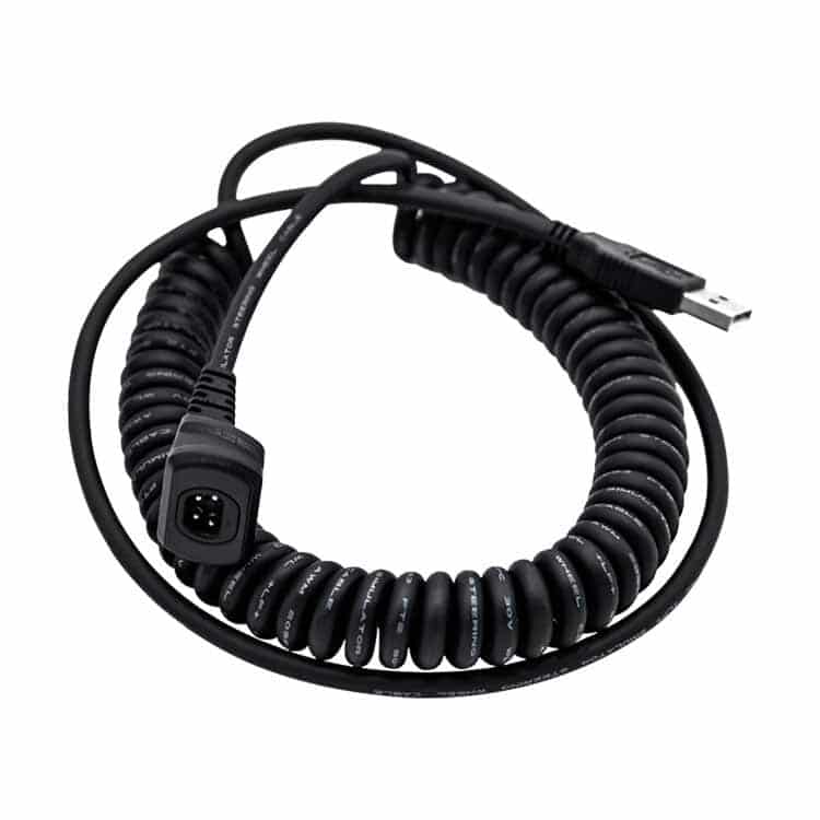 The Cube Controls Q-CONN Magnetic USB Cable connector. Compatible only with our F-PRO and QRX with magnetic connection. Black cable with details in bas-relief.