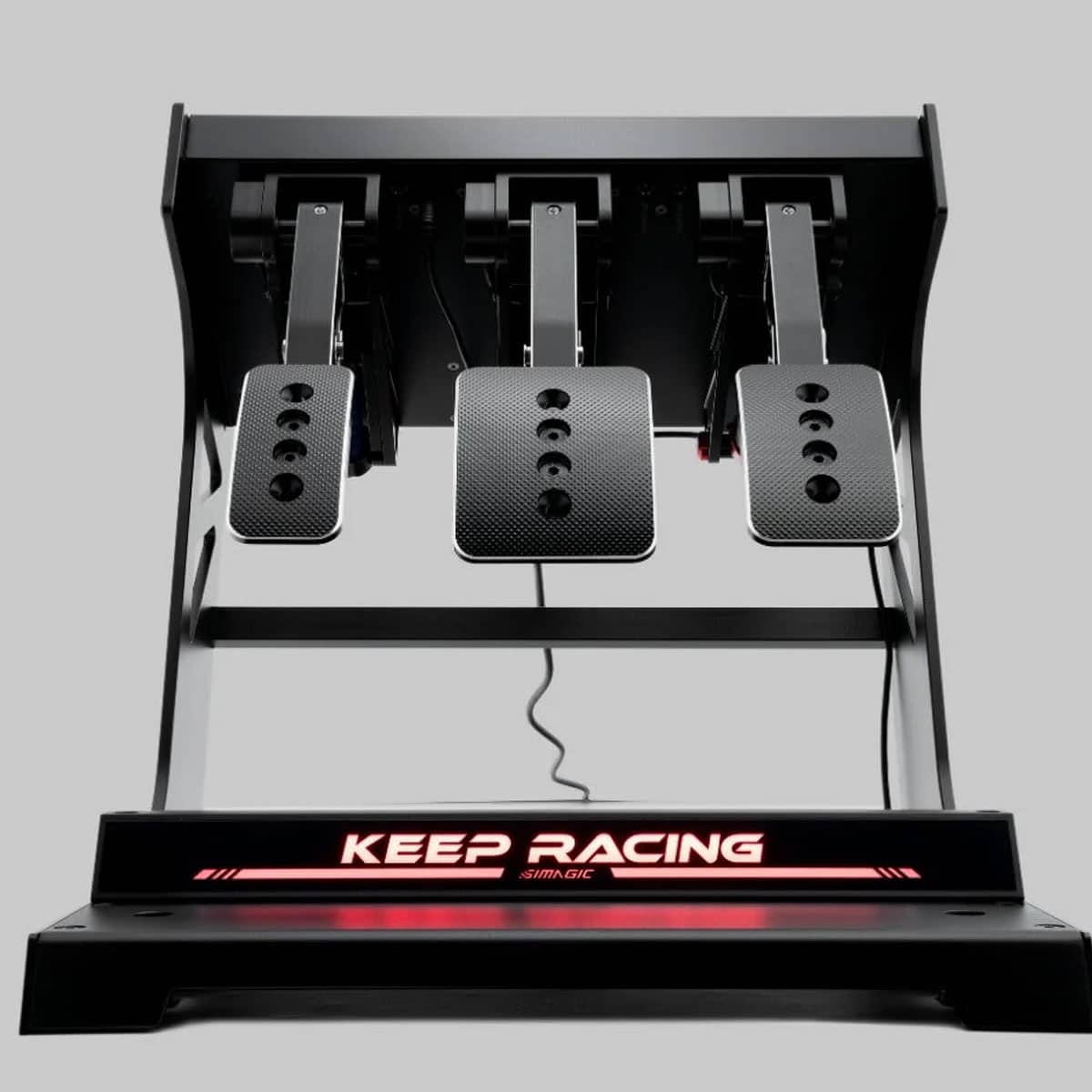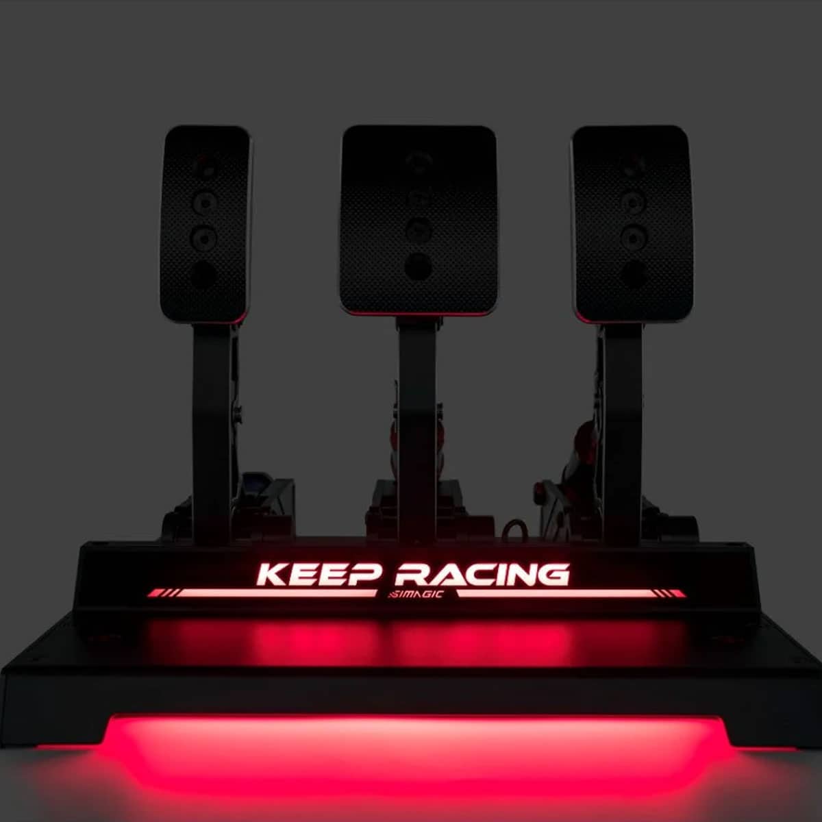 The SIMAGIC Sim Ray-Heel Stop is an optional RGB heel stop supports telemetry data feedback and customizable lighting colours e.g. red flashes on brakes and green on throttle.